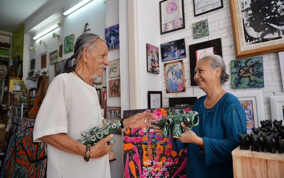 Ban ngày hai vợ chồng nhận làm phù điêu trang trí cho nhà hàng, khách sạn, tối đến mới có thời gian vẽ tranh. “Chuyển hẳn về sống ở Sài Gòn, vợ tôi từ một người làm thơ, nội trợ cũng trở thành nhà điêu khắc bất đắc dĩ. Mỗi ngày, chúng tôi leo lên giàn giáo cao năm sáu mét khắc phù điêu tường, nhớ lại vẫn không hiểu sao mình có thể làm được như vậy”.