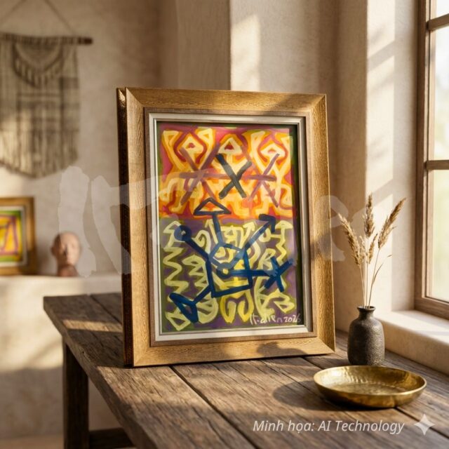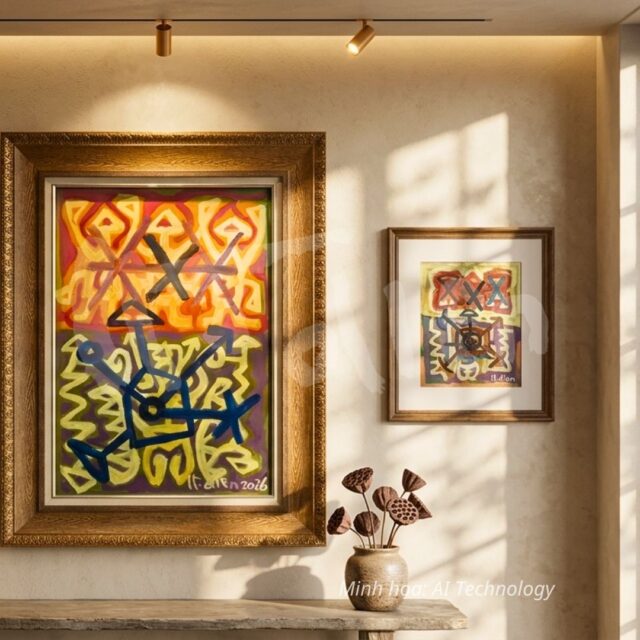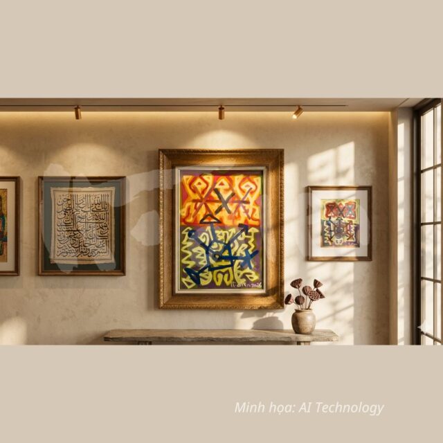 Hình ảnh mô phỏng tác phẩm trong không gian nội thất do AI thực hiện (Interior mockup generated by AI)